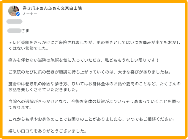 嬉しい口コミをありがとうございました。