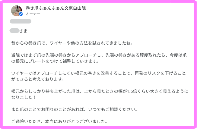 また爪のことでお困りのことがあれば、いつでもご相談ください。