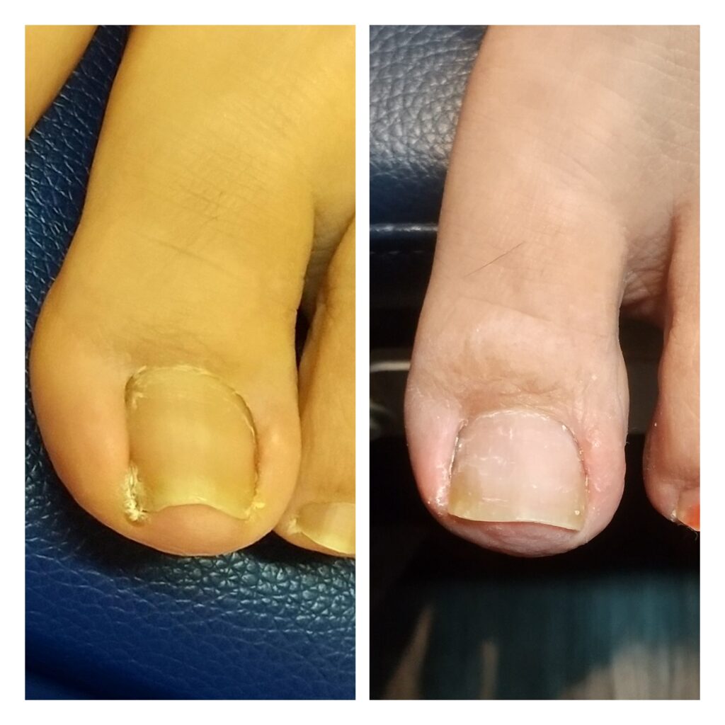 子供の頃からの巻爪で、以前他の皮膚科でワイヤーの治療をうけましたが、あまり改善せず。