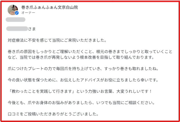 今後とも、爪やお身体のお悩みがありましたら、いつでも当院にご相談ください。